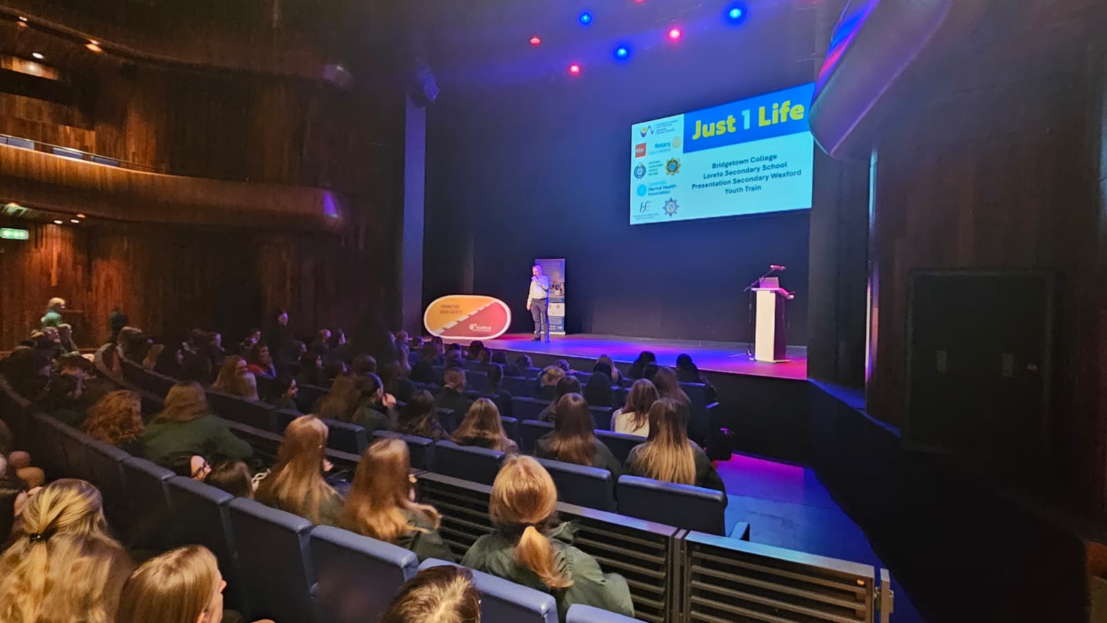 On December 3 the first Just 1 Life event of this school year took place at the National Opera House in Wexford. Hosted by The Rotary Club of Wexford in partnership with Wexford County Council, there will be five Just 1 Life events during the 2025/26 school year. Students from Bridgetown College, Loreto Wexford, Presentation Secondary School Wexford and Youth Train attended this event. In total there were approximately 300 students at this event.
